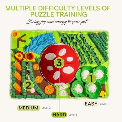 - Cognitive Training: The dog snuffle mat features foraging areas of varying difficulty, with a cabbage that includes a crinkly sound. By encouraging natural food-seeking behavior, it stimulates your dog's intelligence, boosts confidence, and reduces destructive tendencies