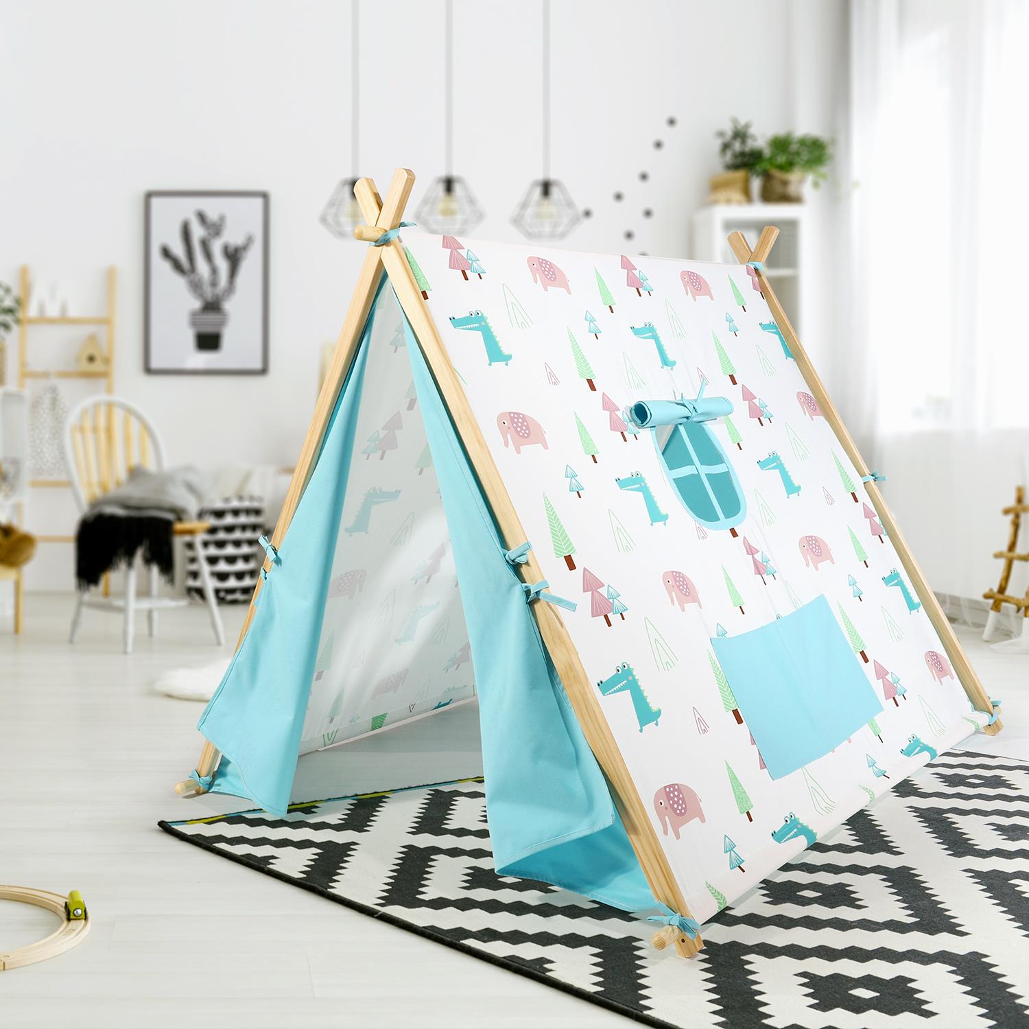 PREMIUM QUALITY & WELL DESIGNED: Crafted with breathable cotton canvas and smooth, non-toxic wooden poles, our canvas tents are built to last. The sturdy frame ensures durability while maintaining its shape during playtime. The tent features a curtain door for privacy, which can be tied back for an open feel, as well as a side window for easy parental supervision and natural ventilation. Plus, a convenient pocket design allows children to keep their favorite books and small toys close at hand.