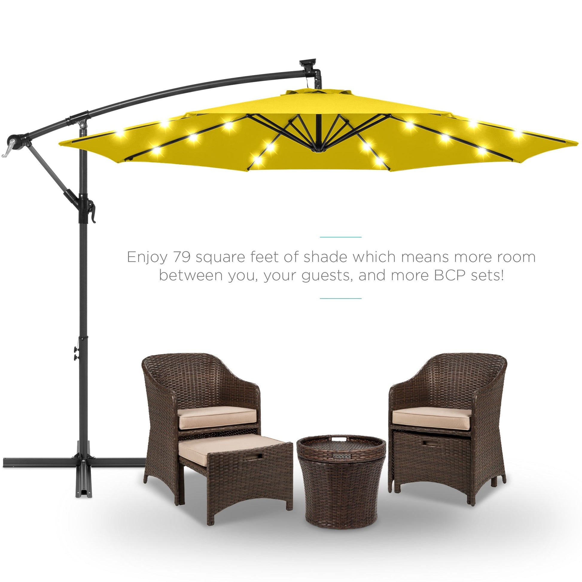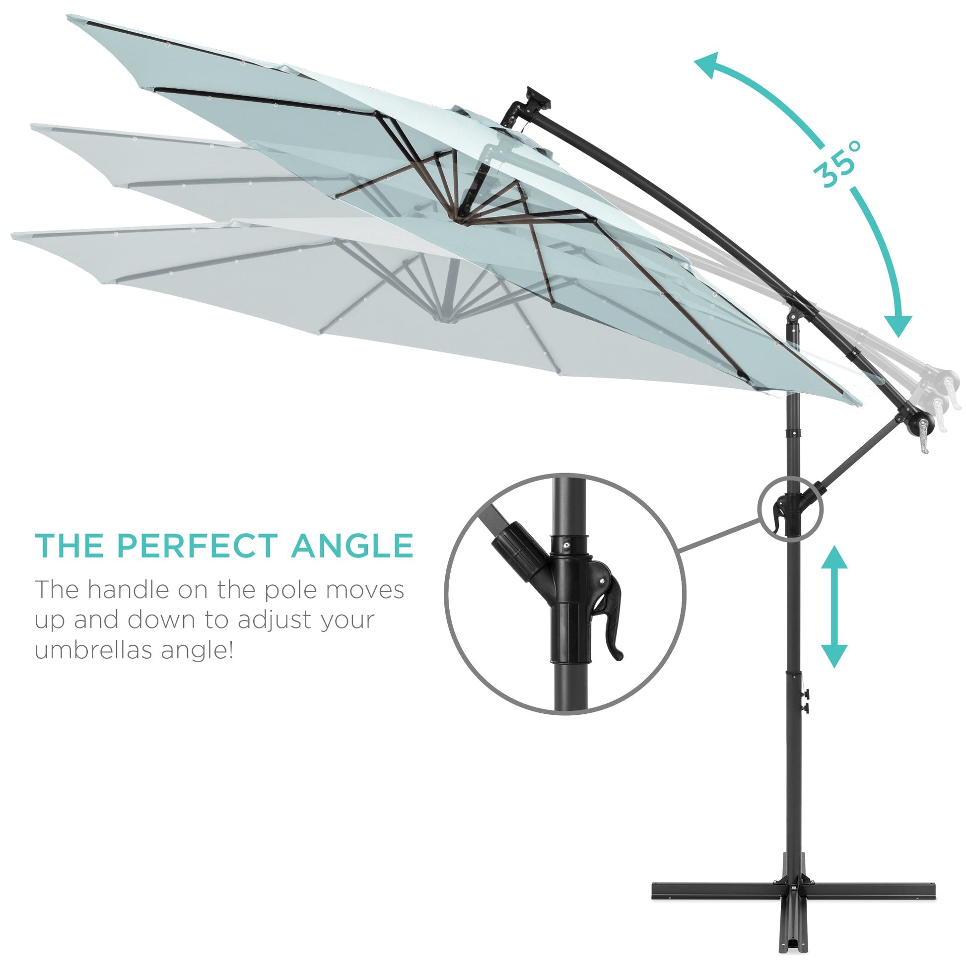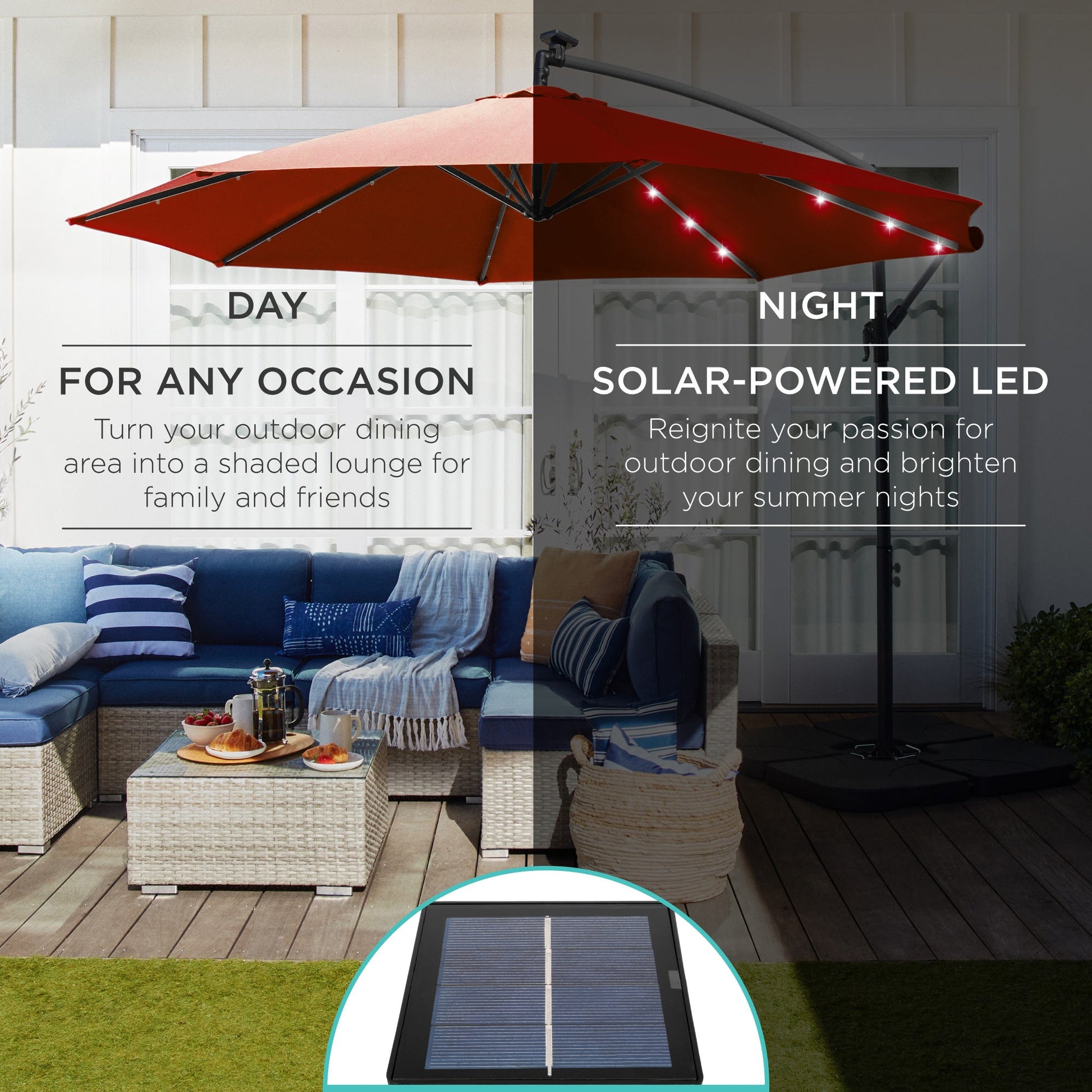 Solar LED Offset Hanging Patio Umbrella w/ Crank Tilt Adjustment - 10ft
