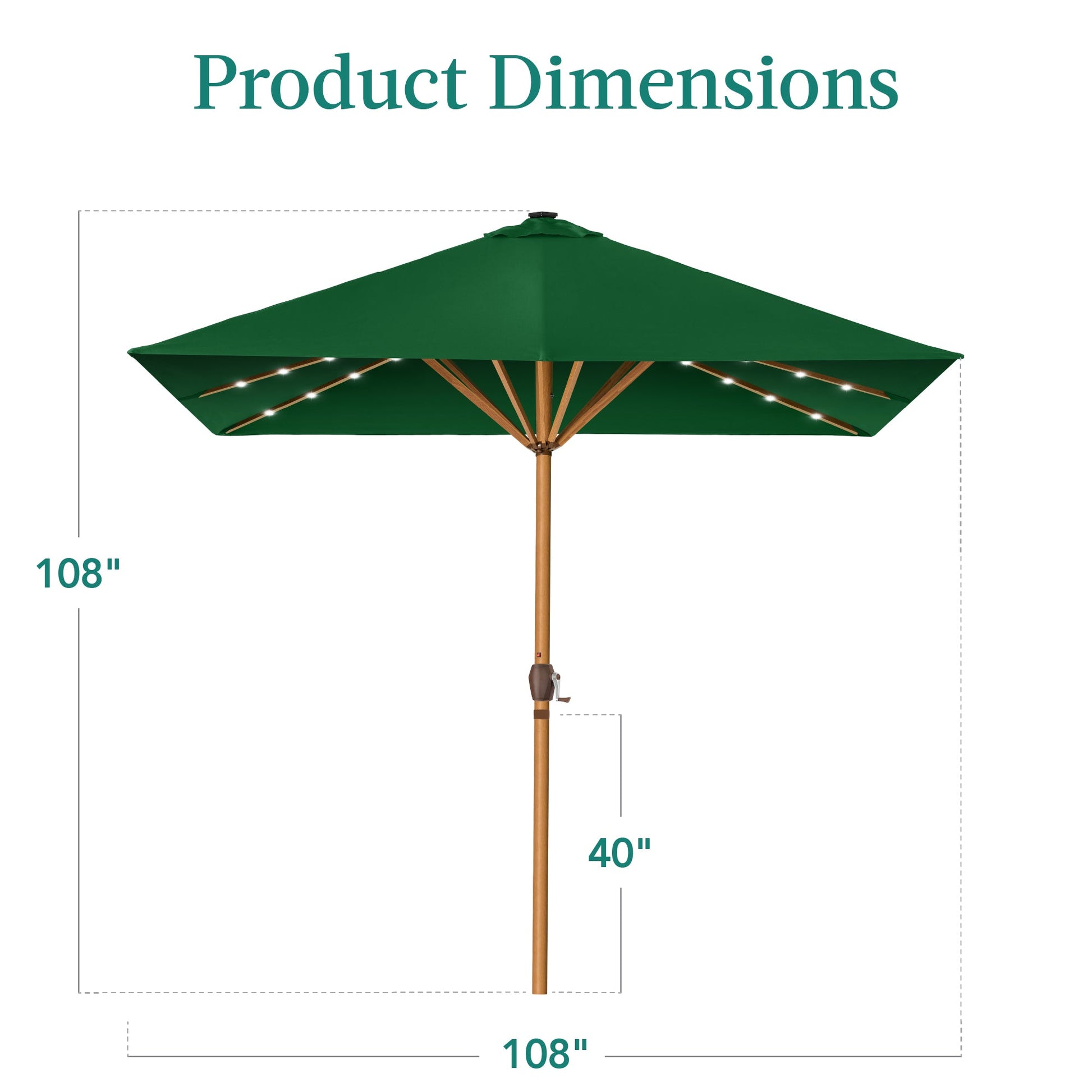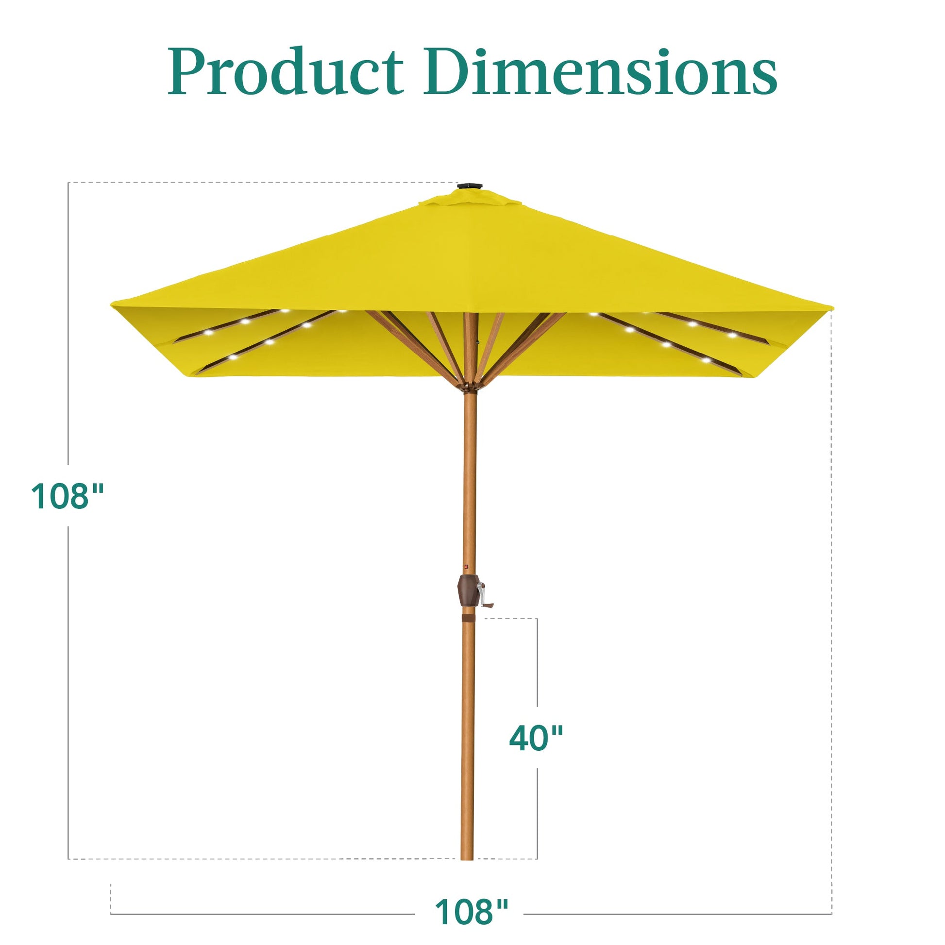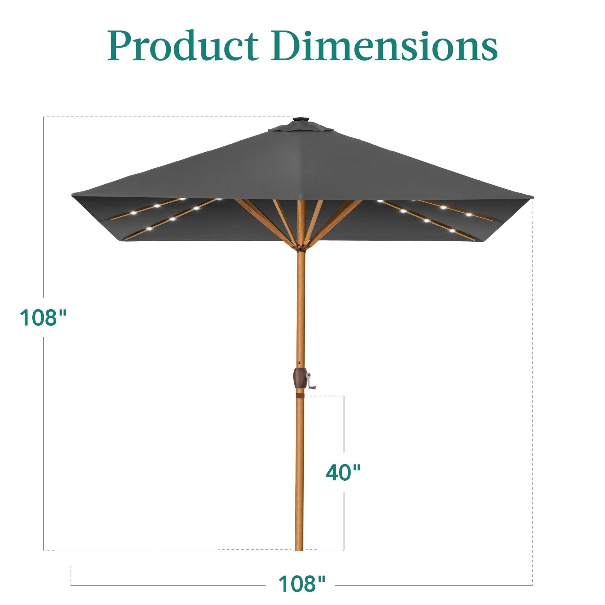 Square Solar LED Lighted Patio Umbrella w/ Woodgrain Pattern - 9ft