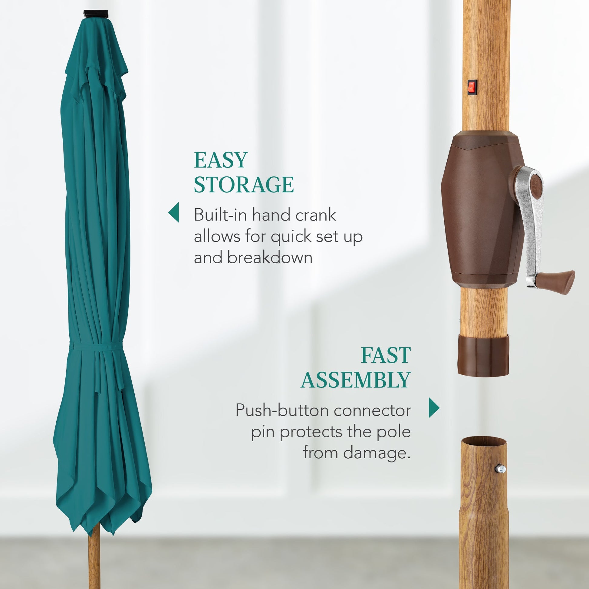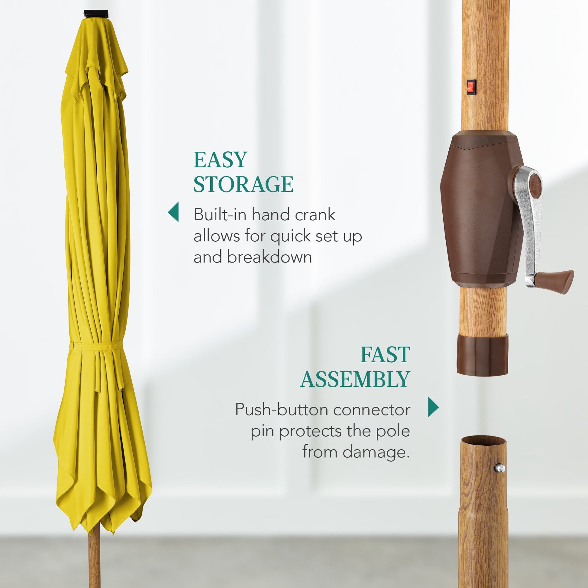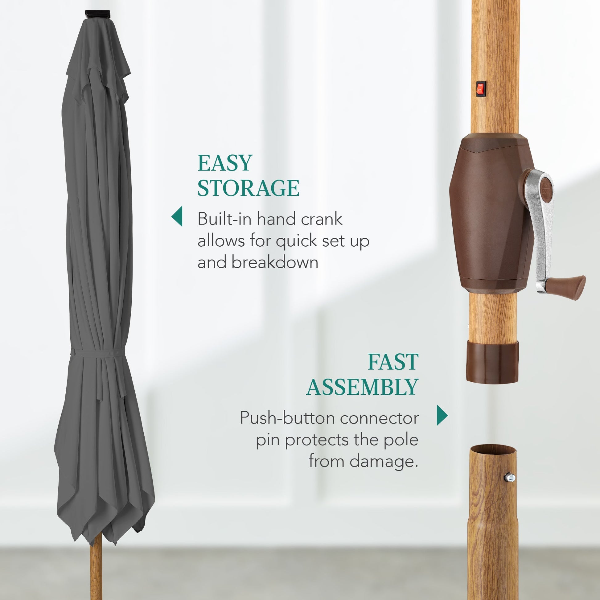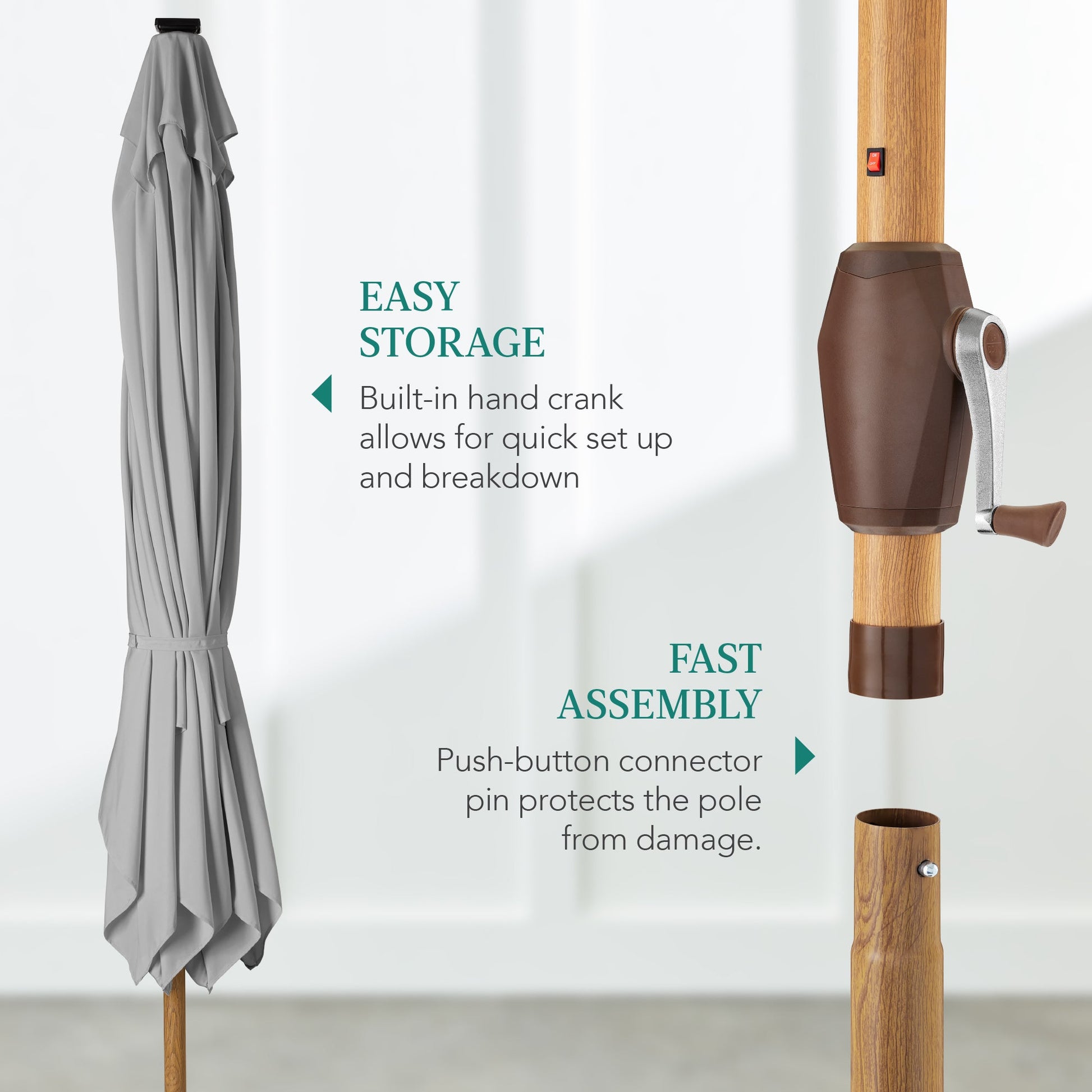Square Solar LED Lighted Patio Umbrella w/ Woodgrain Pattern - 9ft