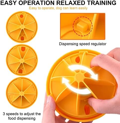 - Three-speed food dispensing : Designed with three different sizes of food dispensing holes, compatible with most pet food on the market. The speed can be adjusted by rotating the internal dial.