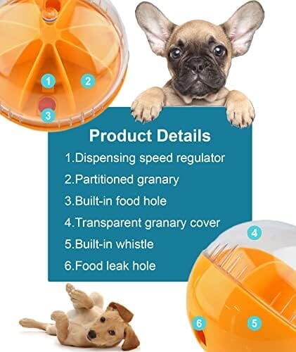 - Funny treat dispensing dog toys: This ball allows dogs and cats to hear, see, smell, and find food treats. Reduces their mischievous behavior and provides lasting entertainment.