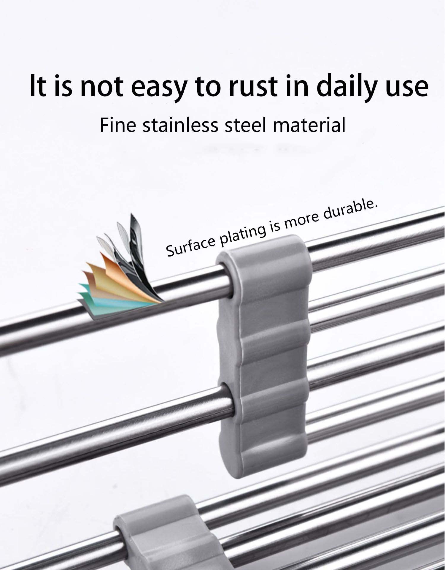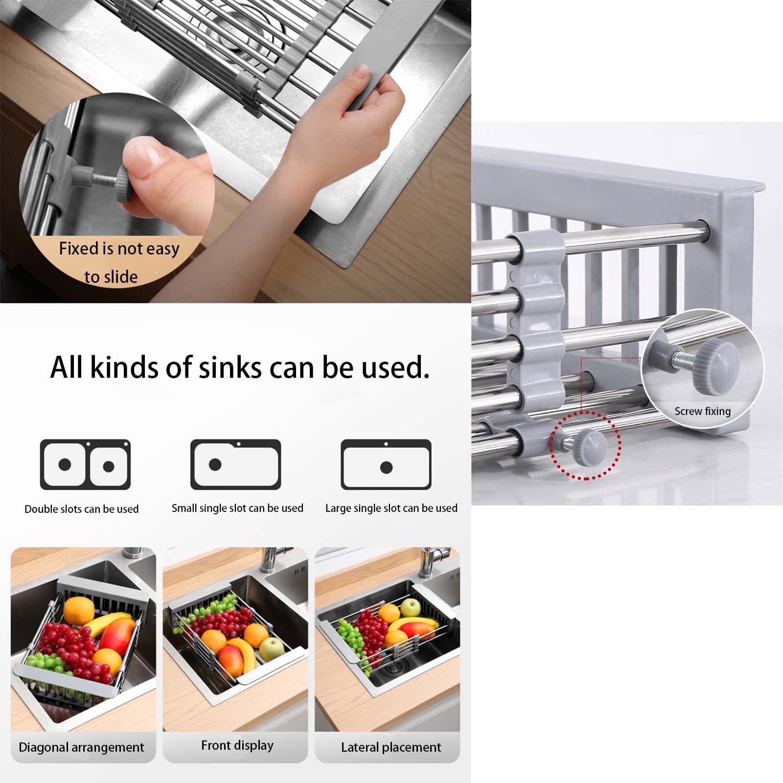 3.【Retractable Design】The telescopic can adjust the drainage basket, the telescopic rod is free to draw, Screws can freely fix the length of the drain basket, and it is not easy to slide, It is the best choice for kitchen cutlery and cooking tools.