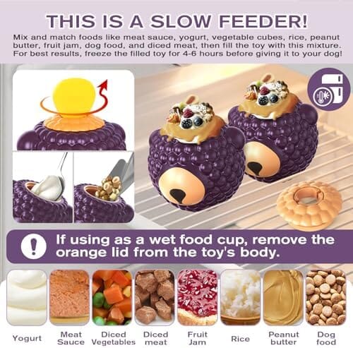- The appearance of the product adopts a purple cute bear shape design, which can better arouse the interest of pets at the same time, but also increase a certain amount of fun. The product is also designed to be easy to clean, and pets can be washed directly under water after eating.