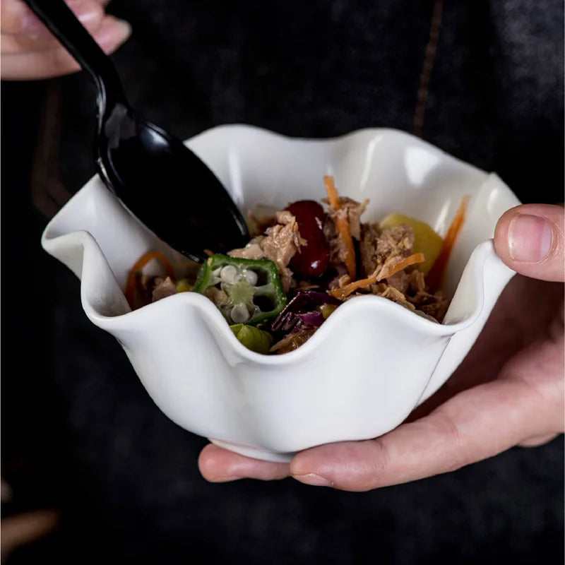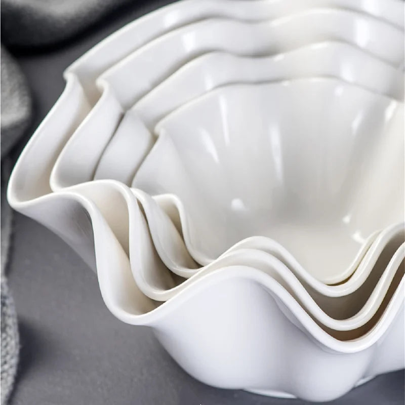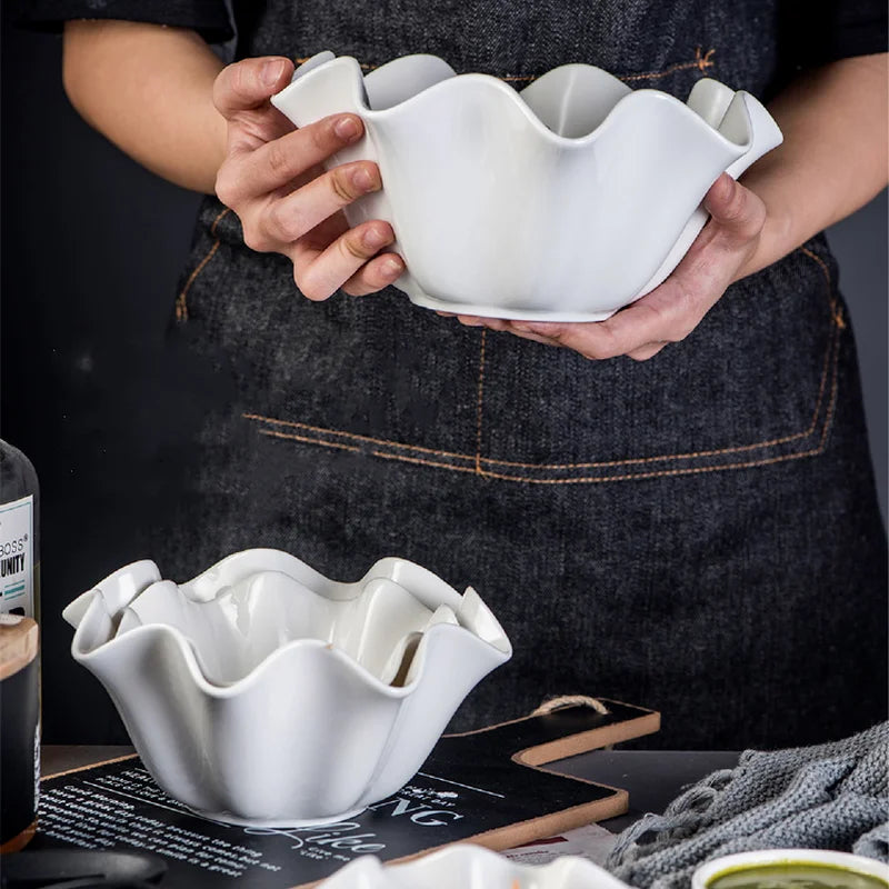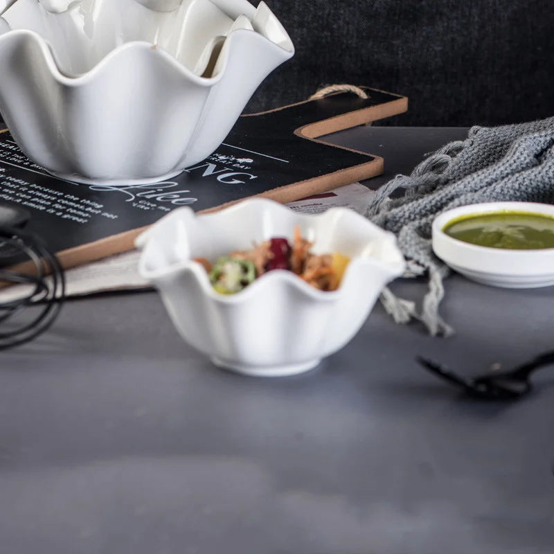White Decorative Ceramic Crimped Edge Bowl - 3 Sizes