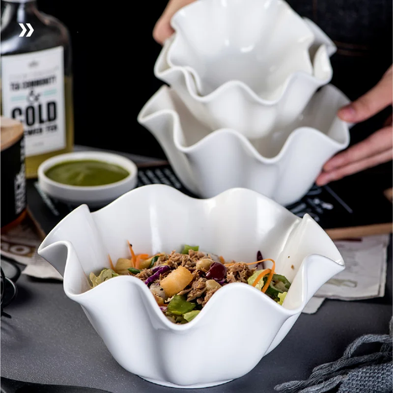 Crafted from high-quality ceramic, its smooth white finish complements a wide range of interiors and occasions, from casual gatherings to formal dinners. Ideal for serving salads, fruits, snacks, or even as a decorative piece, these bowls bring both functionality and aesthetic appeal to your home.