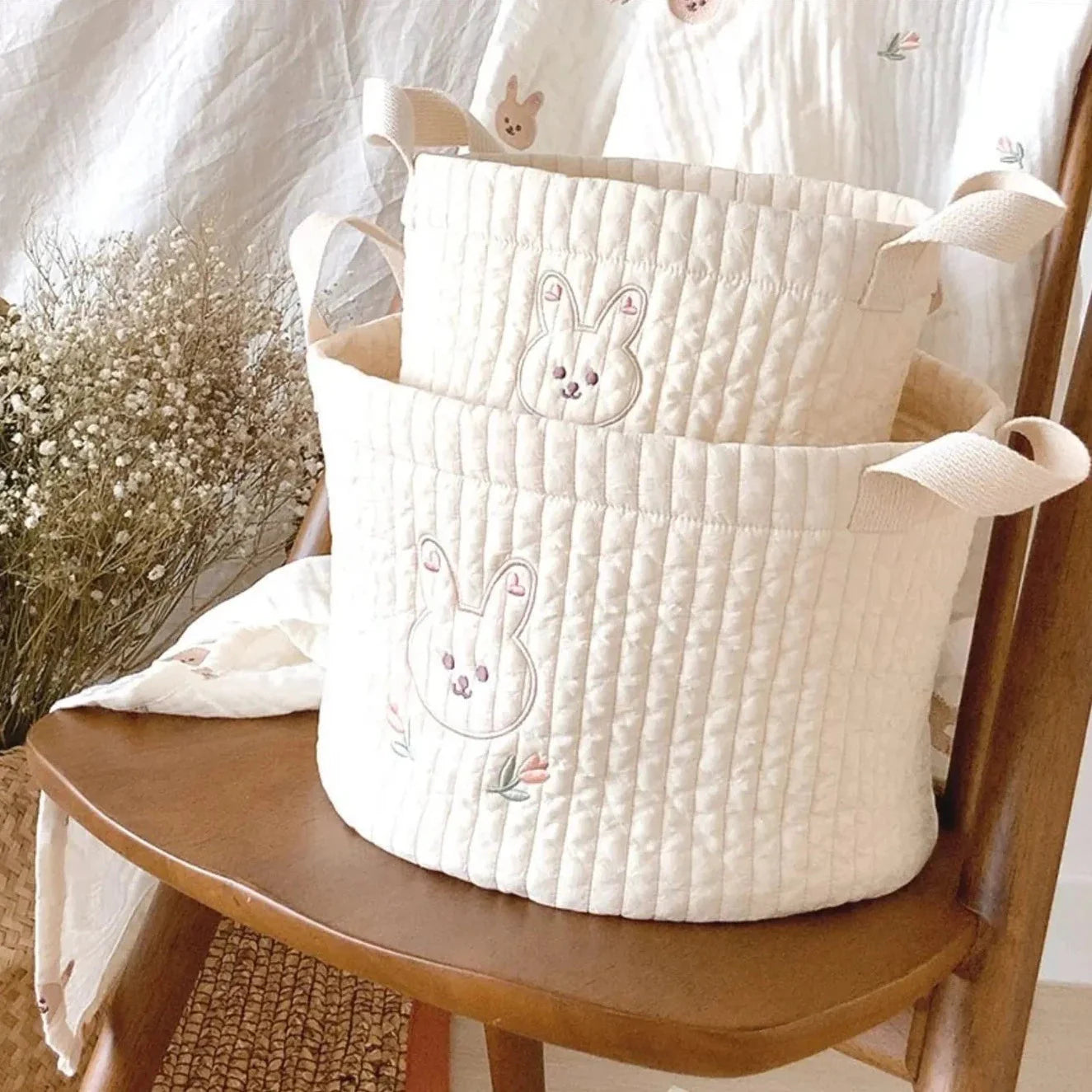 White Embroidered Cotton Baby Basket Storage Organisers - 4 Styles