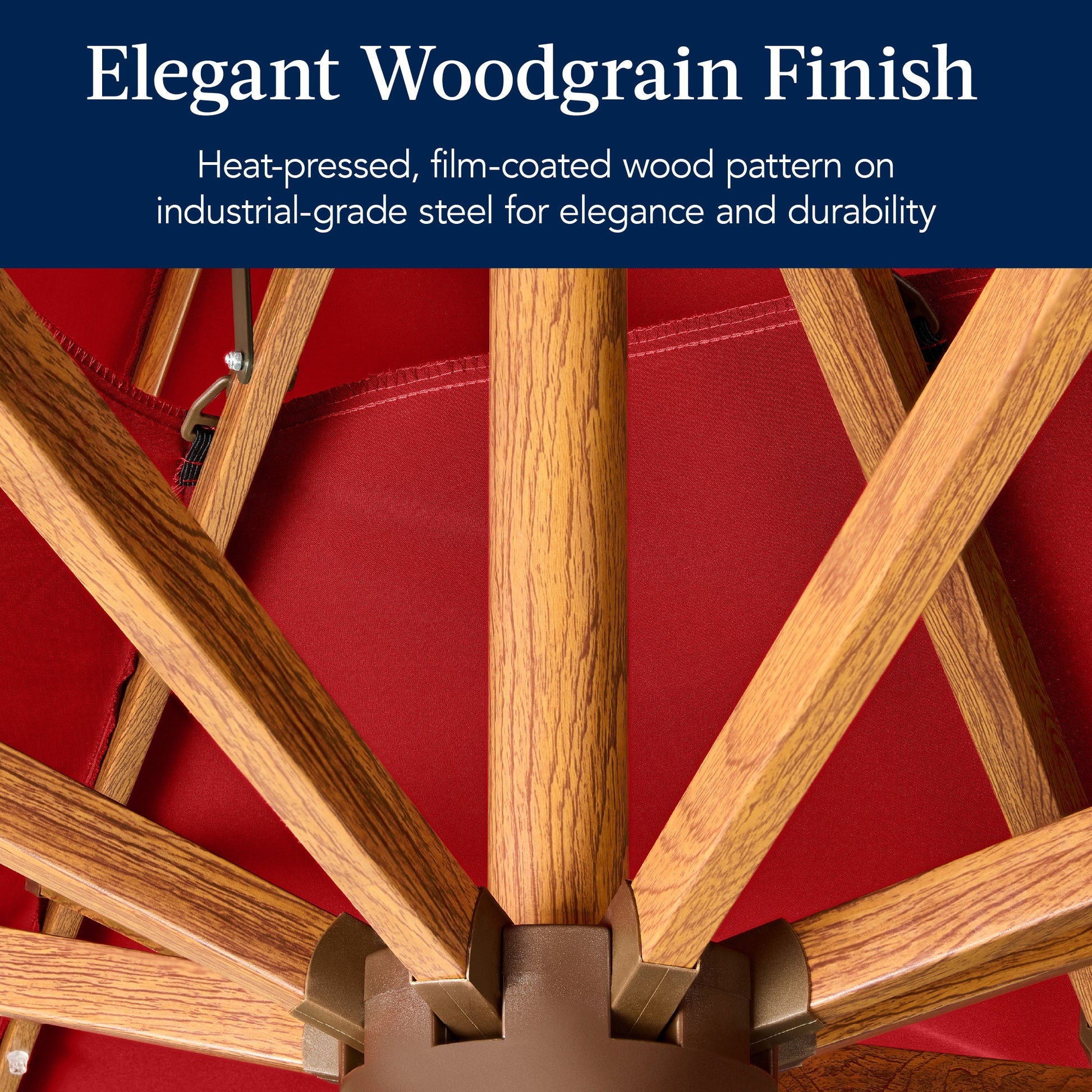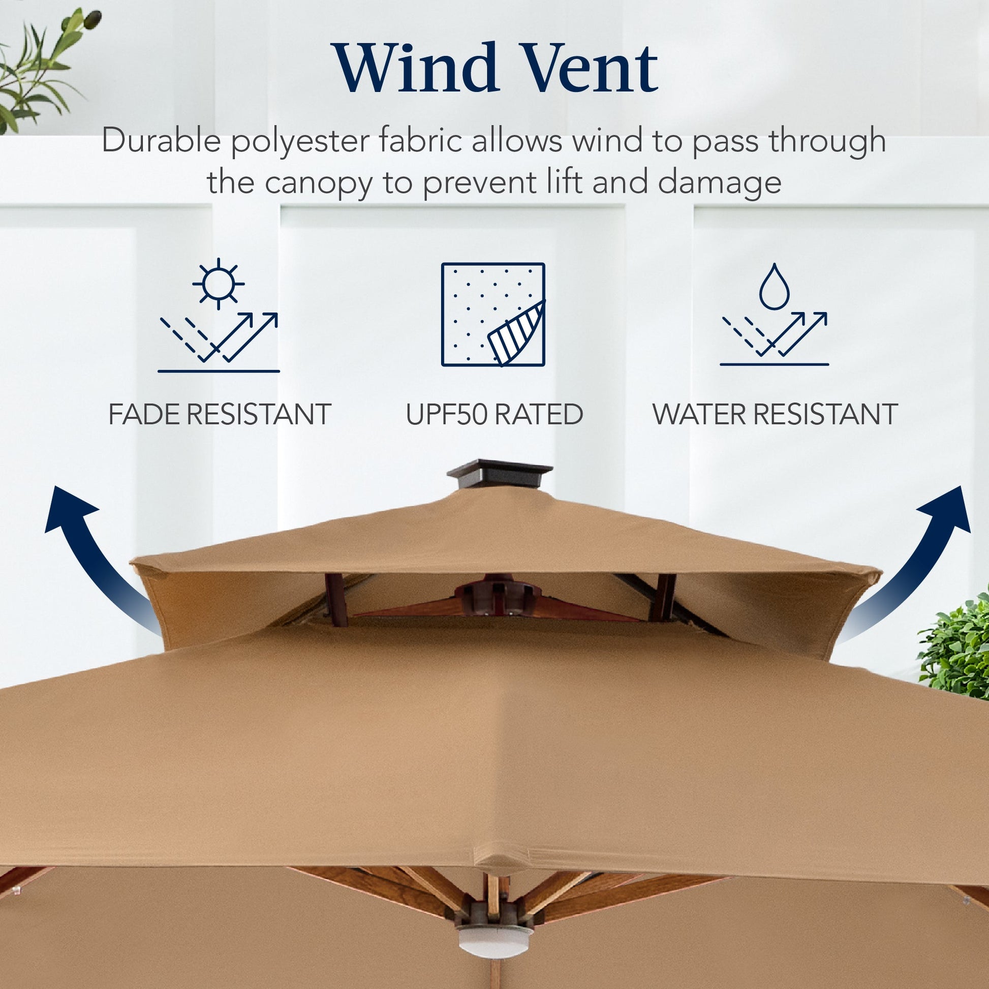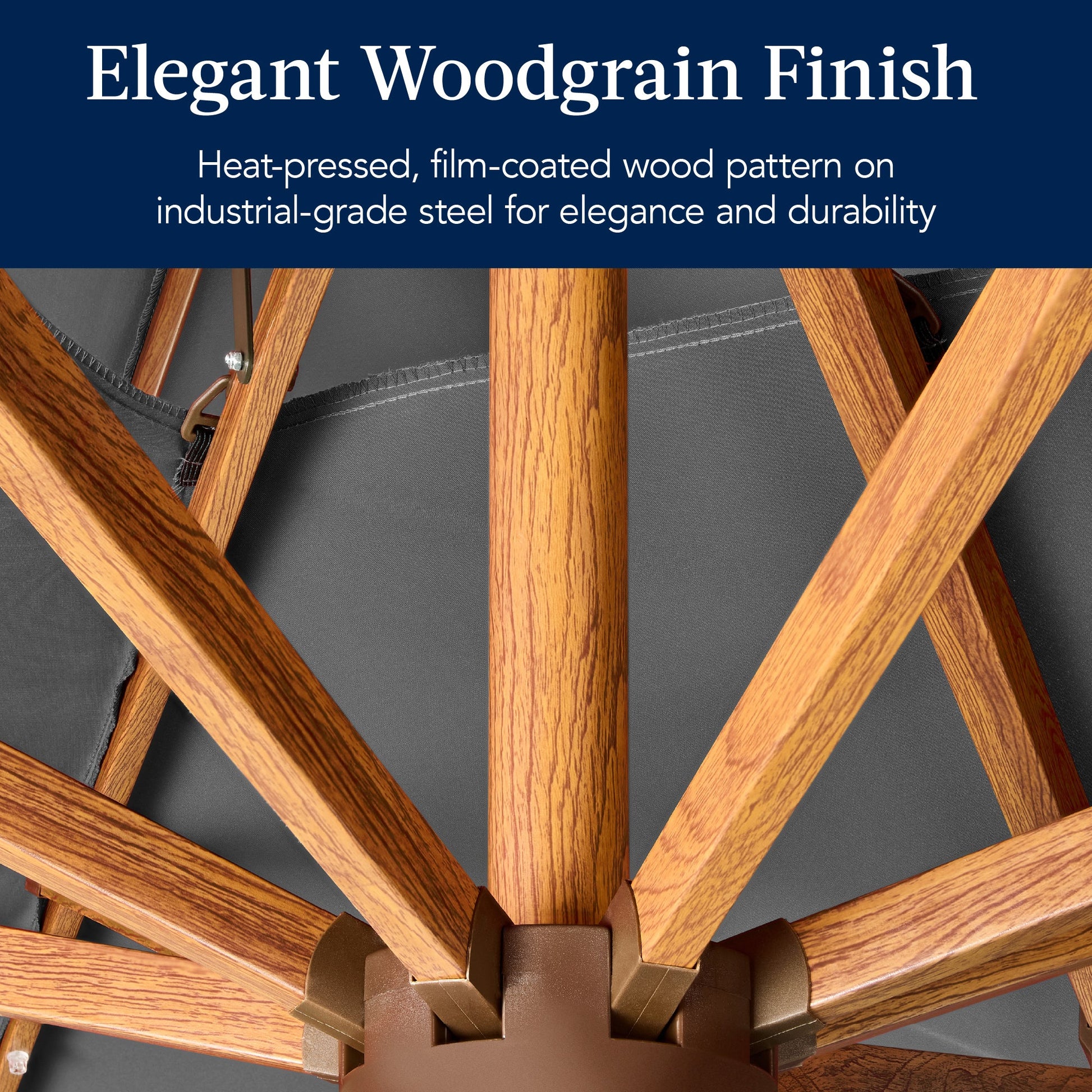 Woodgrain Pattern 2-Tier Outdoor Solar LED Cantilever Umbrella - 10x10ft