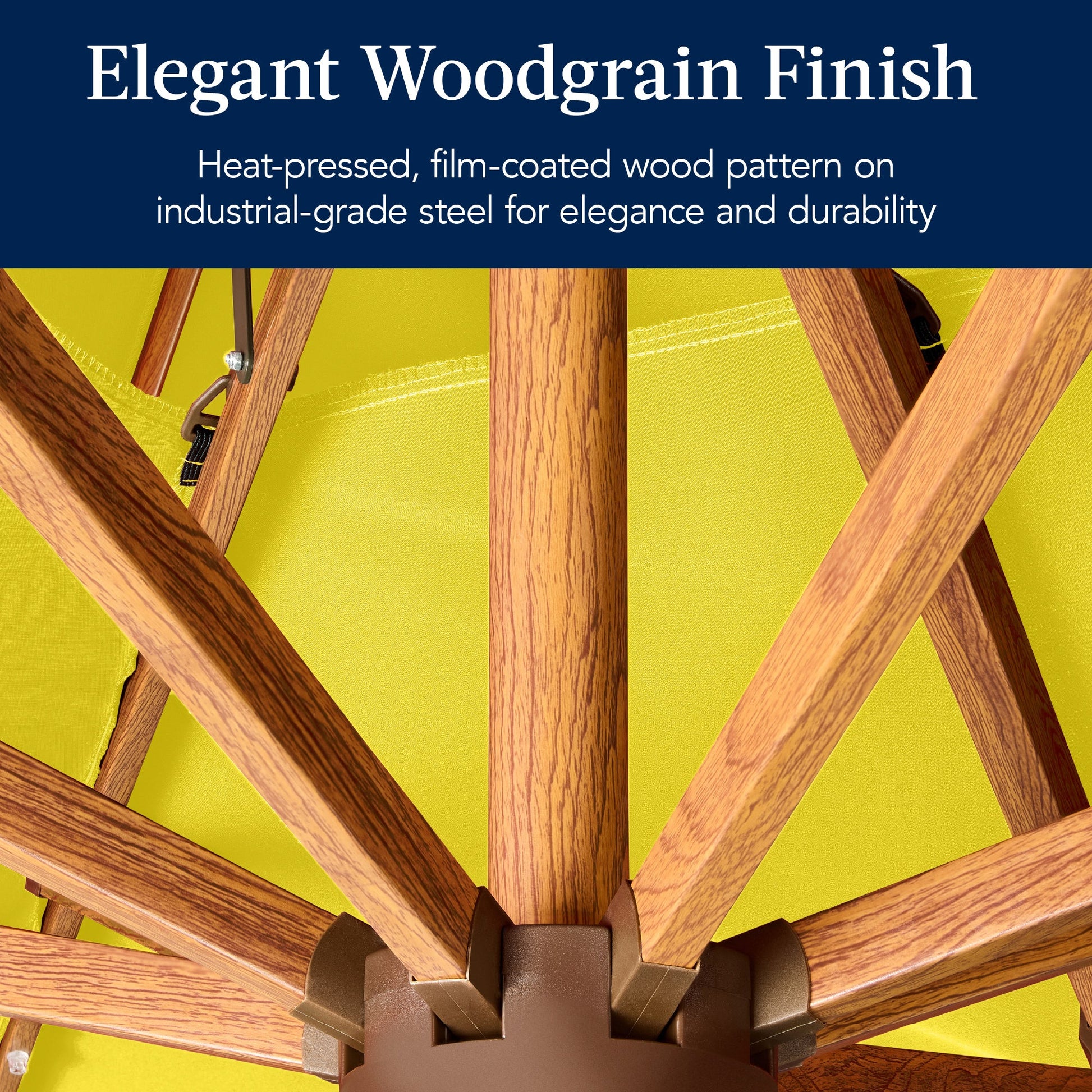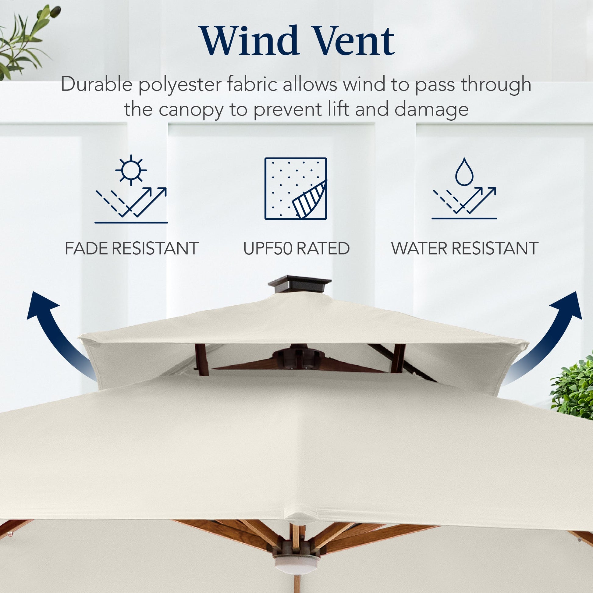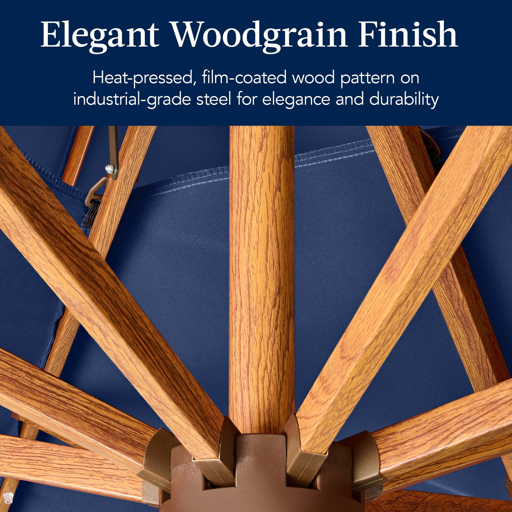 Woodgrain Pattern 2-Tier Outdoor Solar LED Cantilever Umbrella - 10x10ft